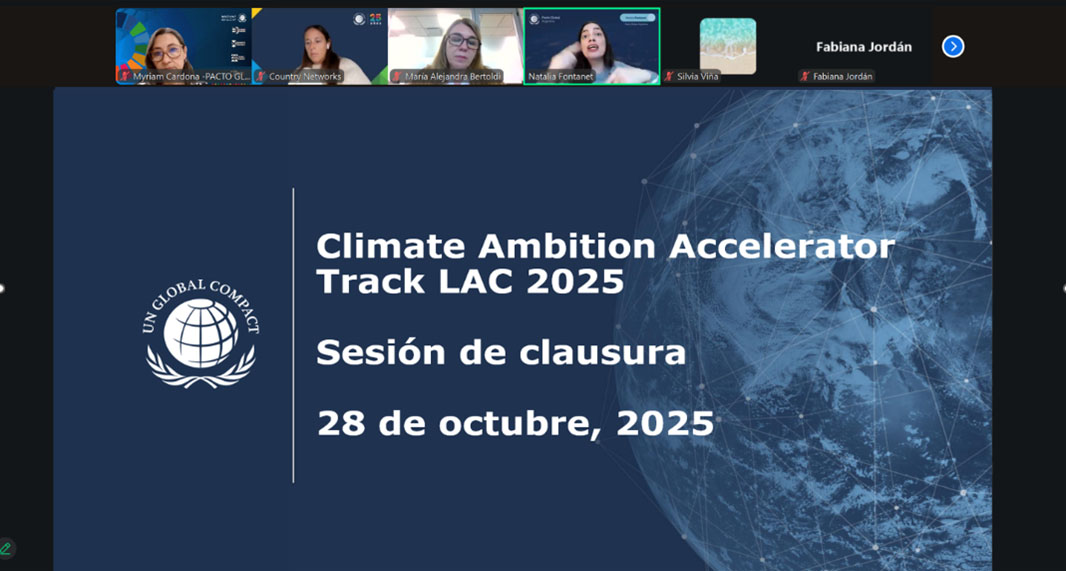 La clausura del Climate Ambition Accelerator 2025 marcó el cierre de un proceso de aprendizaje y colaboración que fortaleció las capacidades de las empresas latinoamericanas para avanzar hacia modelos de negocio más sostenibles, resilientes y comprometidos con la reducción de emisiones. El encuentro reafirmó el compromiso colectivo de las redes del Pacto Global en América Latina por seguir impulsando la acción climática desde el sector empresarial, fomentando la innovación, la cooperación y la alineación con los Objetivos de Desarrollo Sostenible.