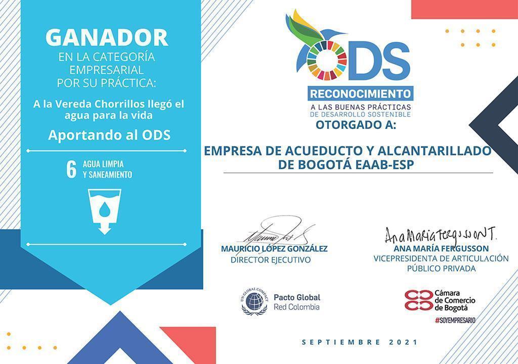 La comunidad rural de Chorrillos no tenía acceso al agua potable y saneamiento básico. Para dar solución, era urgente realizar obras para el acceso a los servicios; sin embargo, no existía ninguna infraestructura porque los suelos rurales no hacen parte del área de prestación de servicio de la EAAB-ESP. Para ello, se puso en operación el sistema de acueducto y alcantarillado beneficiando a 194 viviendas y 775 campesinos, para que los usuarios cuenten con servicios en las mismas condiciones que los bogotanos de la zona urbana. Se construyeron 10,7 kilómetros de redes de acueducto y 5,3 de alcantarillado sanitario. Esta iniciativa hace parte del propósito principal de la EAAB-ESP: “Somos agua para la vida generando bienestar para la gente” y ha ayudado a cerrar las brechas en el ODS 3, al mejorar las condiciones de salud pública de los habitantes de las veredas de Chorrillos 1, 2 y 3, en el área rural de la localidad de Suba en Bogotá, disminuyendo los factores de riesgo de enfermedades. | |||
