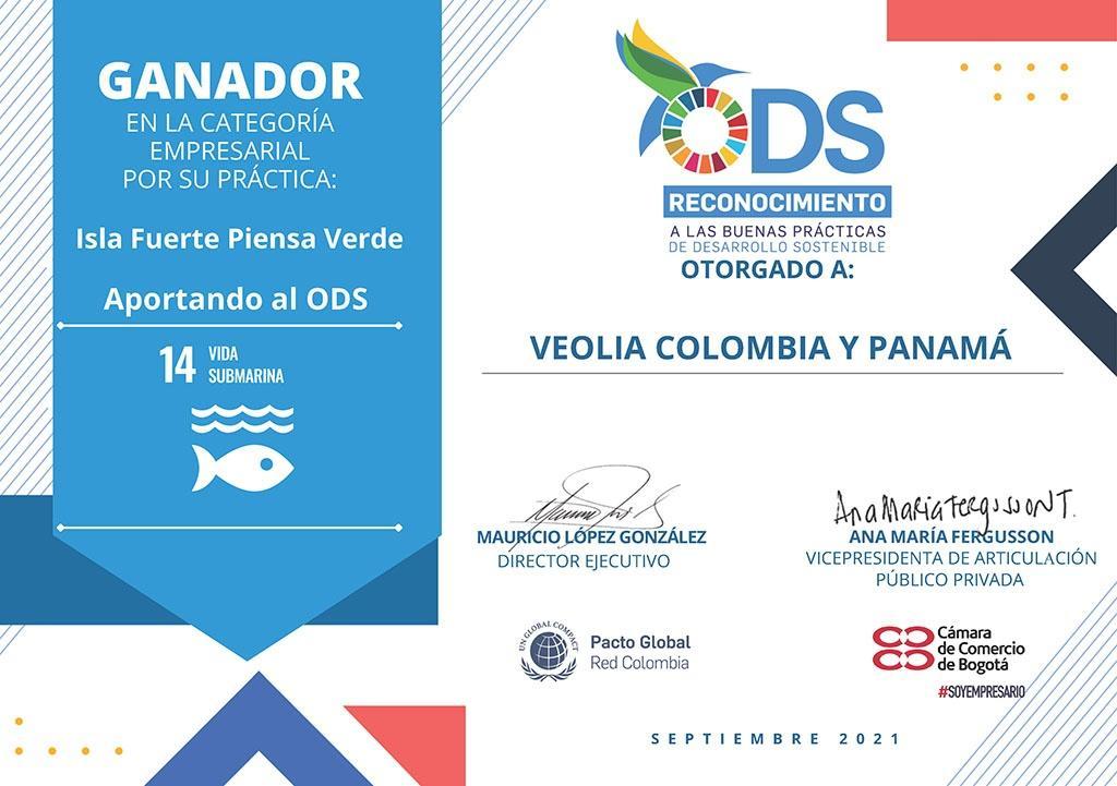 “Isla Fuerte, Piensa Verde" un proyecto inclusivo que se desarrolla entre la comunidad nativa de la Isla y VEOLIA, el cual implementa rutas de recolección selectiva de residuos, de la mano con la comunidad y un proceso de educación ambiental para fortalecer la cultura del cuidado de la biodiversidad y el ecosistema marino, utilizando el espacio de almacenamiento de los residuos para hacer la debida separación y el aprovechamiento de los residuos. | |||