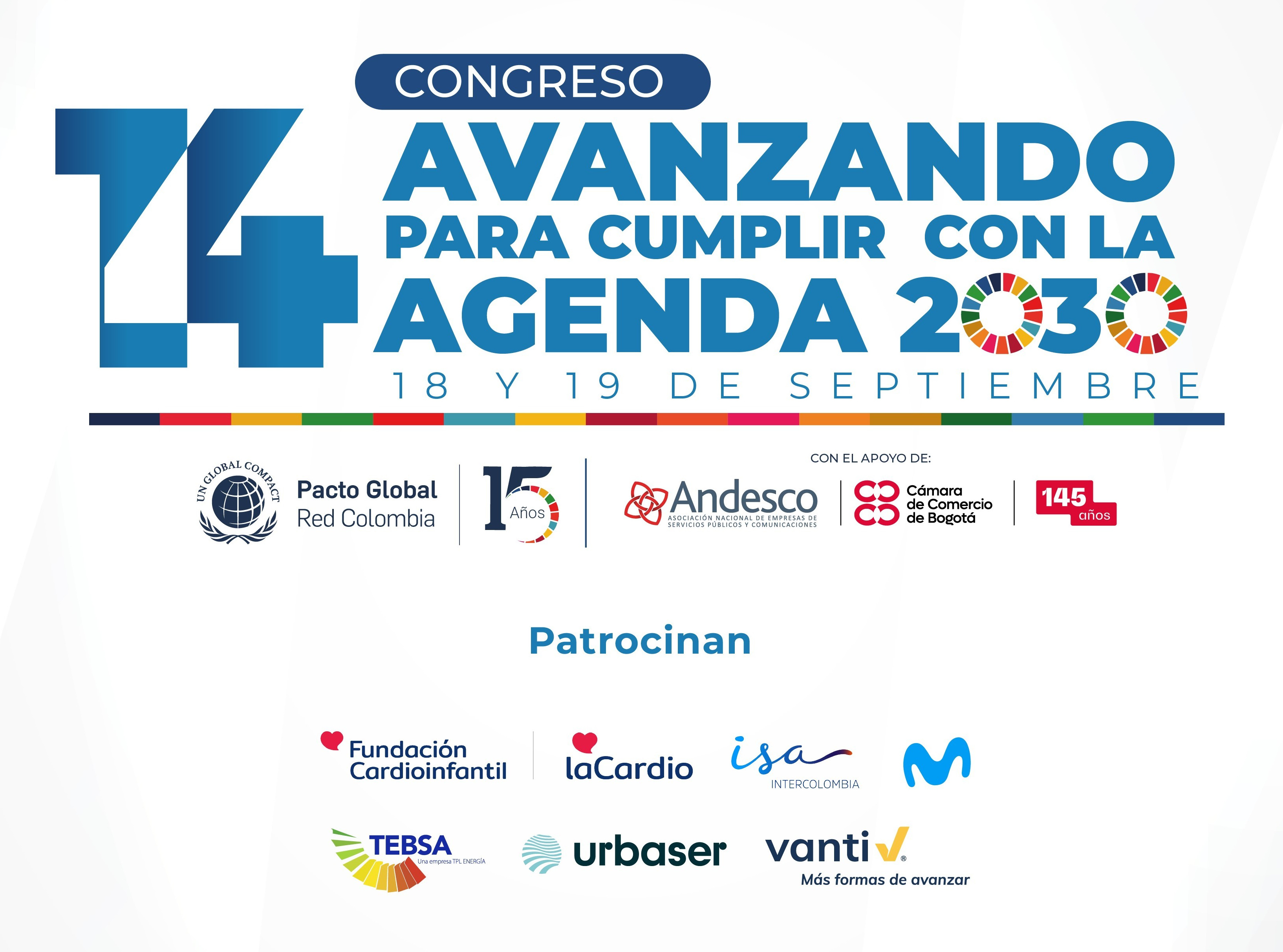 ¡INSCRIPCIONES GRATUITAS! 14 CONGRESO PACTO GLOBAL RED COLOMBIA AVANZANDO PARA CUMPLIR CON LA AGENDA 2030 18 Y 19 DE SEPTIEMBRE – BOGOTÁ | |