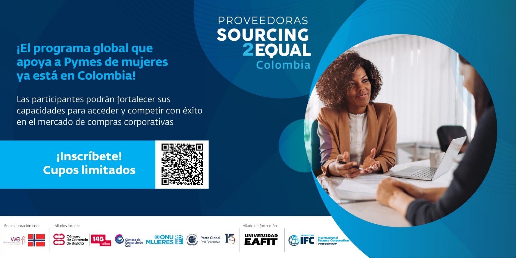 La Corporación Financiera Internacional - IFC - International Finance Corporation - del Banco Mundial, aliada de Pacto Global Red Colombia en el programa SOURCING 2EQUAL COLOMBIA, abrió la Convocatoria para el Programa Proveedoras Sourcing2Equal Colombia, que tiene como objetivo fortalecer las capacidades de Pymes de mujeres para acceder y competir con éxito en el mercado de las compras corporativas como proveedoras de grandes empresas.